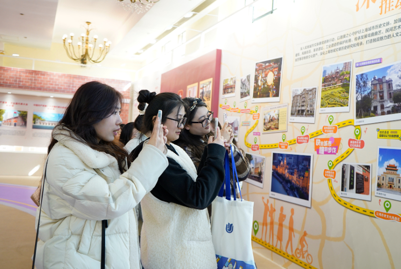 “这个郊野公园就在咱们家门口,下次我们一起去这里露营!”“这张照片里不是我们师兄吗?赶紧拍照给他看看!”“这里展示的就是我们单位的工作呀,大家在这里合张影吧!”展览期间,很多观众在展厅内找到了自己熟悉的场景,有的是自己从事的工作内容、有的是身边的便民设施和环境变化,大家纷纷在展板前打卡留影并上传新媒体平台,与朋友们分享开心时刻。