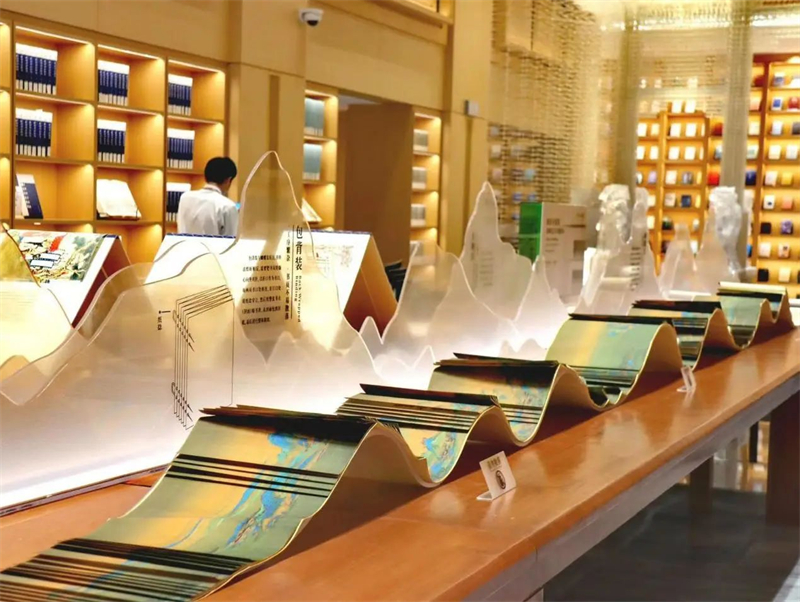 图博融合的深层价值在于将文化惠民落到实处。在《龙鳞装艺术书籍特展》上,龙鳞装作品《大国古风》长达14.69米,卷轴直径25厘米,重3公斤,将中国34个省级行政区的山川风物、历史人文尽数容纳其中,为市民呈现了一场装帧艺术视觉盛宴。“书的建筑性”与“建筑的阅读性”在这里相融合,给观者带来了独一无二的阅读模式。在这一意义上,阅读可建筑,阅读可感触。