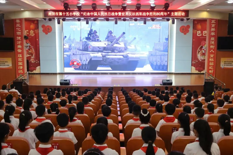 “阅兵仪式太震撼了!从阅兵仪式上,我看到了我们国家的繁荣昌盛!”9月3日上午,南阳市第十五小学校全体师生齐聚一堂,共同观看纪念中国人民抗日战争暨世界反法西斯战争胜利80周年大会直播,通过这样的“开学第一课”,激励同学们扬爱国情,立强国志,践报国行。